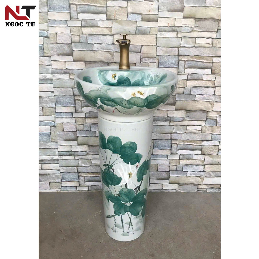 CHẬU LAVABO NGHỆ THUẬT TRÒN CÓ CHÂN ĐỨNG - GỐM SỨ TÂN CỔ ĐIỂN