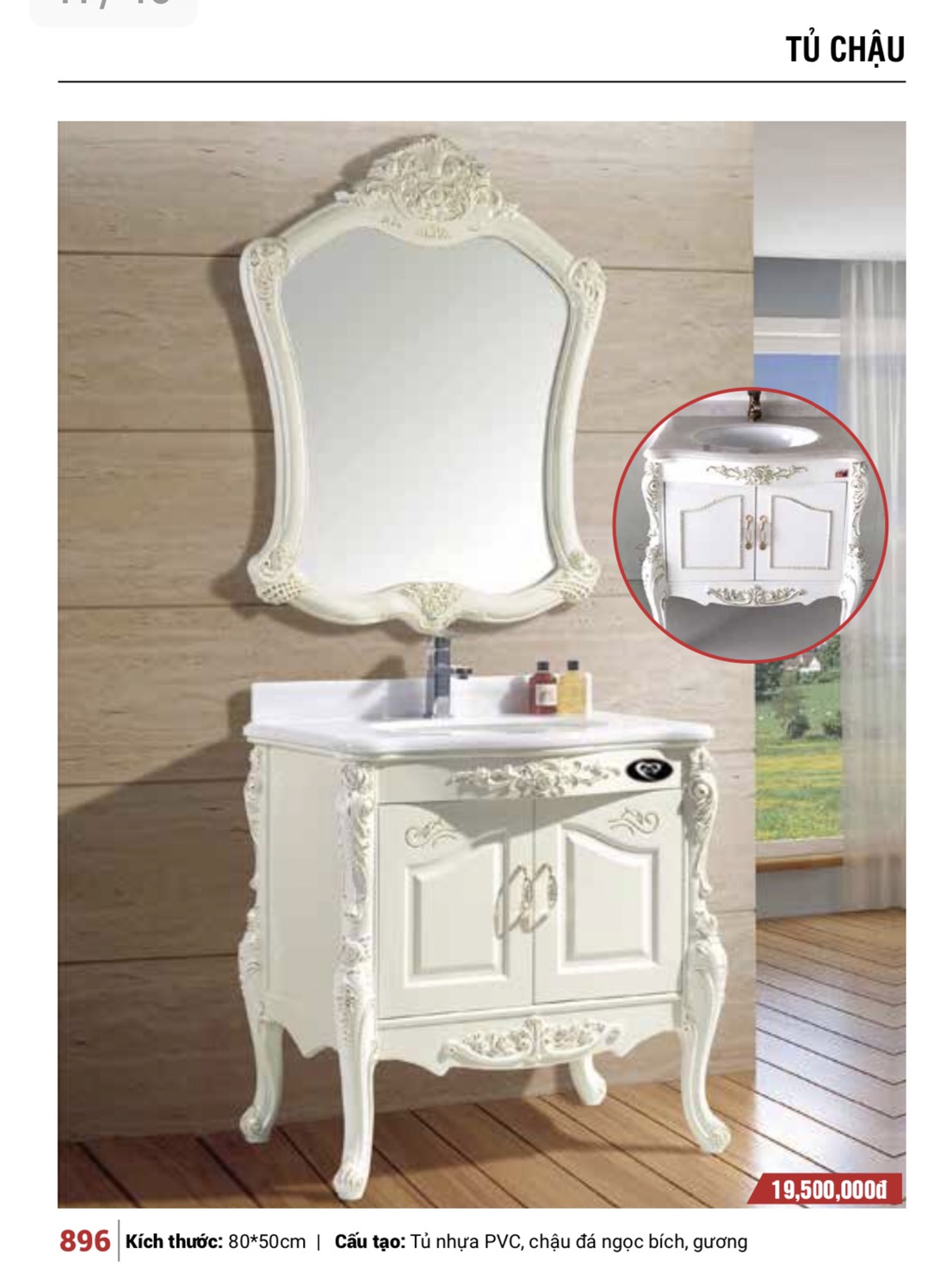 ✔️ Tủ cốt nhựa PVC dày dặn, chịu lực tốt, sơn phủ nhiều lớp sáng bóng đẹp bền, chống mối mọt, ẩm mốc của thời tiết Việt Nam, Chậu sứ đá Ngọc Bích, chống ố vàng bền bỉ với mọi môi trường, gương phôi bỉ, tráng bạc 8 lớp, cách điệu đẹp, hoa văn tinh sảo chống ẩm mốc.
